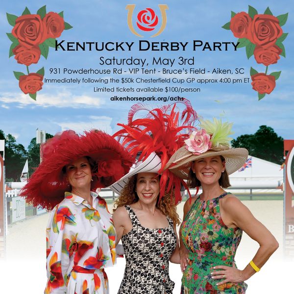 It has become an Aiken Charity Horse Show Tradition to host a Kentucky Derby Watch Party immediately following the $50,000 Saturday Grand Prix. ALL sponsorships with VIP access include access to the Kentucky Derby Party. We will sell a limited number of Derby tickets.