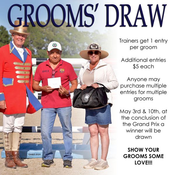 Another Aiken Charity Horse Show tradition that we are incredibly proud of is the recognition of our unsung heroes of the equestrian world, the grooms. Each Saturday, we will hold a draw to identify a lucky groom who will receive a cash prize and gift. Please consider buying your grooms more chances to win! The more entries we receive the bigger the pool for a few lucky grooms.
